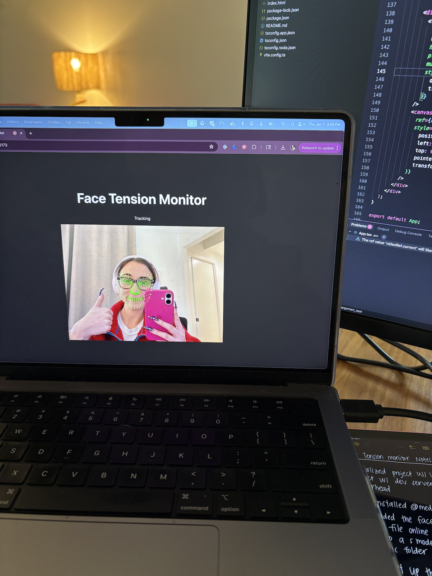 I started wondering whether tension is something I don’t notice because it isn’t measurable. I found myself questioning 1) whether making it visible could change my behavior, and 2) whether stopping it earlier would reduce migraine frequency. Those questions became the foundation for building a facial tension detector.